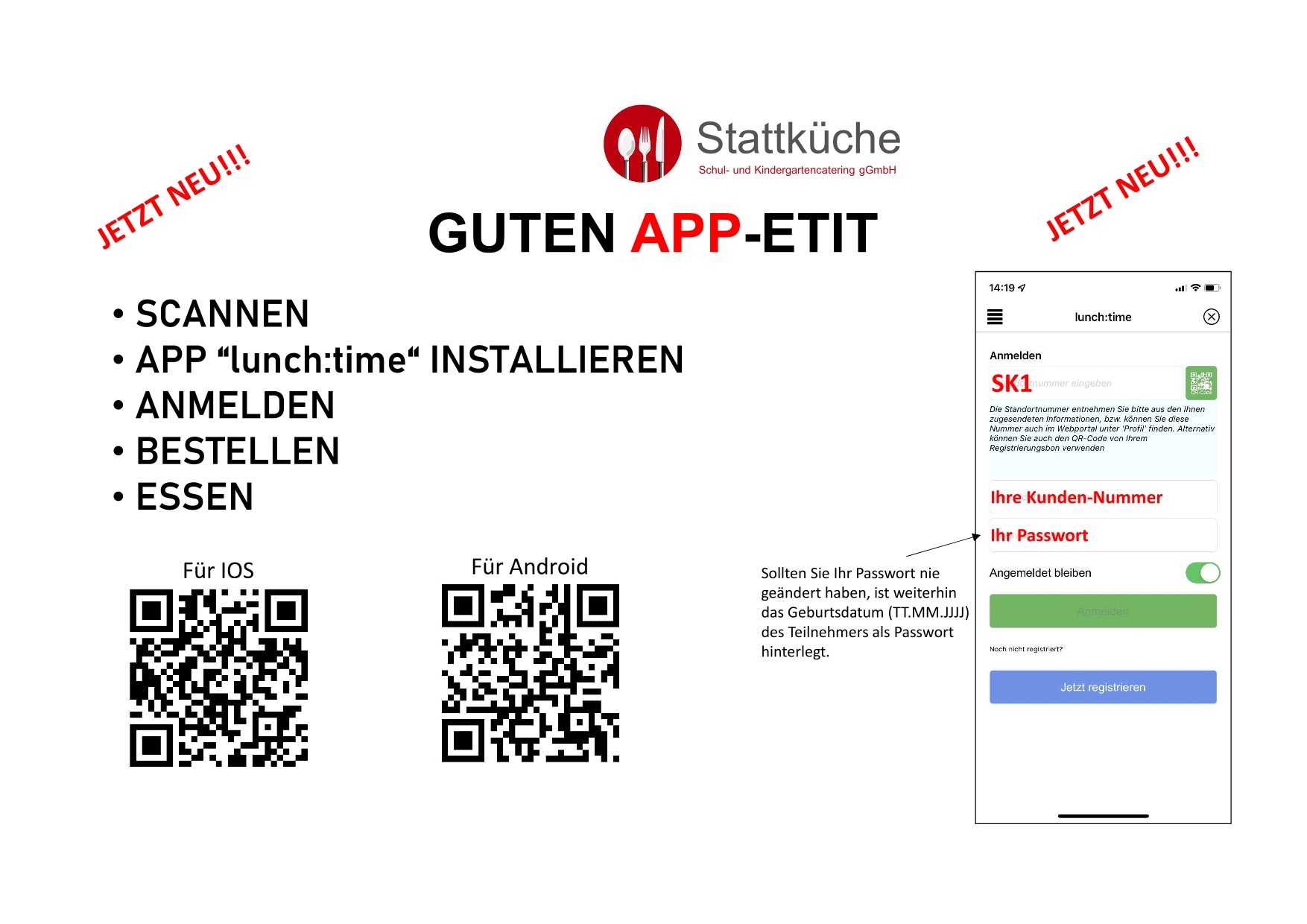 1) Hier kann man sich für das Mittagessen der Stattküche anmelden