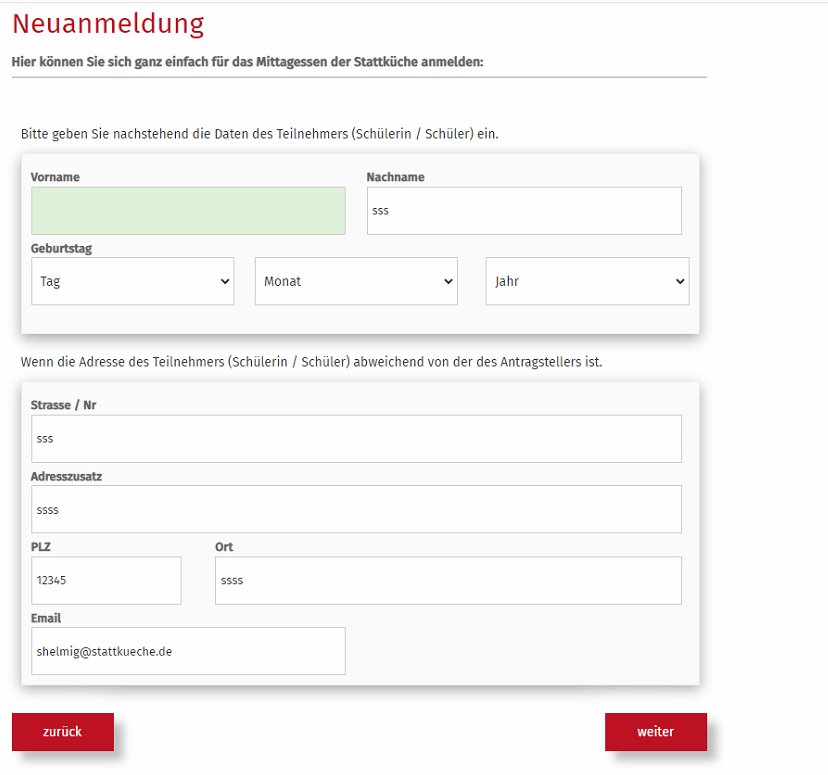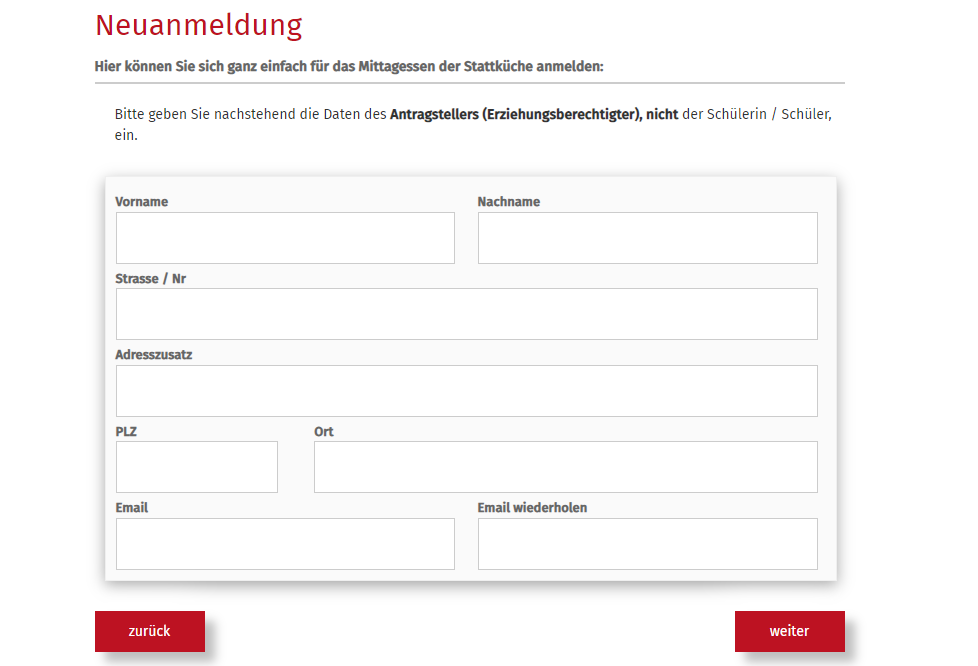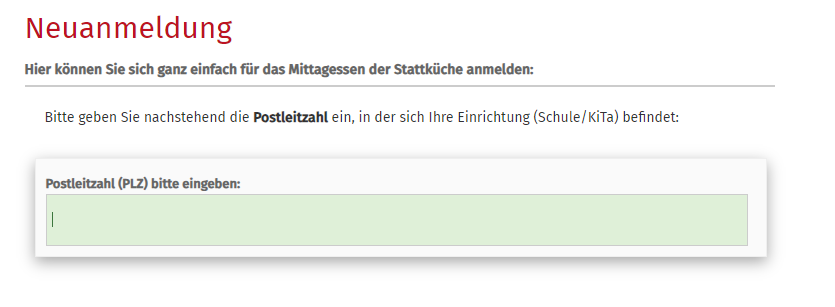 Wir freuen uns, Sie als Neukunden bei der Stattküche begrüßen zu dürfen.