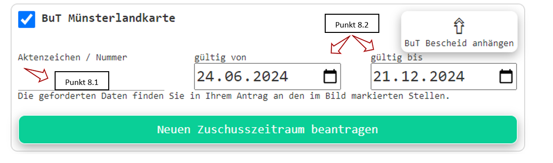8. Füllen Sie nun alle Felder aus und klicken im Anschluss auf „Neuen Zuschusszeitraum beantragen“.
